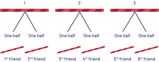 Below are examples of equal-sharing problems. Teachers can model these representations, but students are not expected to use fraction notation in Grade 2.