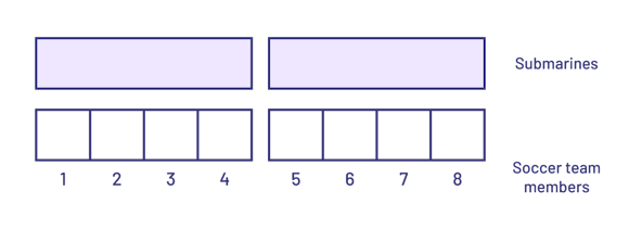 I know that \(\frac{1}{4} + \frac{1}{4} + \frac{1}{4} + \frac{1}{4} = 1 \). So one submarine sandwich feeds 4 people. There are 8 team members, so we need another submarine sandwich.