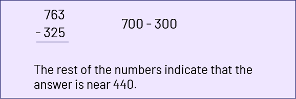 Estimation is often used to provide a preview of the expected result or to check the reasonableness of the solution. Students need to develop the ability to make a quick mental estimation as soon as a calculation is to be performed in order to get a general idea of the result. Unfortunately, many students do not make the connection between the estimation and the correct result; the estimation is then seen as another calculation that must be performed and not as an informally performed strategy that confirms the reasonableness of the calculation.
