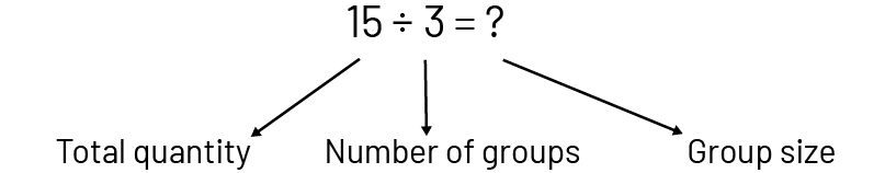 Division has a partitive meaning when the total quantity and the number of groups are known (for example, 3 students want to share 15 apples equally and we look for the number of apples each will receive).