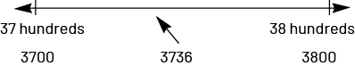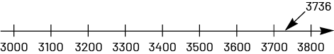 Identifying benchmarks can also be supported by finding a set of values related to the chosen place value (for example, if rounding to the nearest thousand, thinking about 3000 or 4000). Note: It's very important that students consider the whole number. For example, when trying to round to the nearest hundred, some students might focus only on the hundreds and say, for example, that 3736 lies between 7 hundreds (700) and 8 hundreds (800) and that the number is closer to to 700 (instead of 3700). |