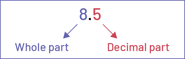 It is essential that students recognize that the decimal part of a number represents a value less than 1 and that this value relates to the units (ones) place. For example, if we divide 1 unit into 10 equal parts, we have tenths.