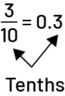 - The student can write the number in fractional notation, that is \(\frac{3}{{10}}\).