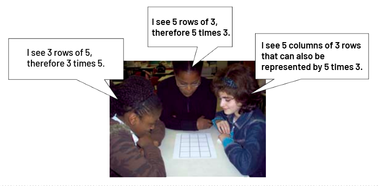 When first learning multiplication, students often think of multiplication as repeated addition. As they attempt to solve a variety of problems, they can use the commutative property of multiplication to develop a more efficient computational strategy.