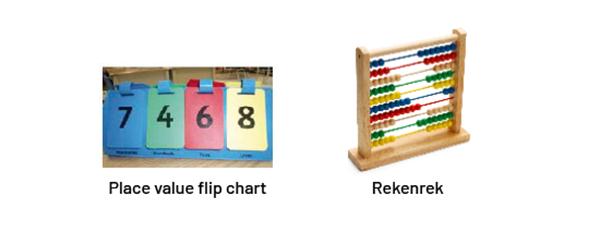 The choice of materials available to students can also make a difference in their development of conceptual understanding. There are a variety of commercial materials available to represent numbers: marbles, interlocking cubes, or any other object that can be used for counting. Some of these materials clearly and concretely represent the relationship between ones, tens, hundreds… (for example, base ten blocks). However, with other materials, this relationship is represented in a more abstract way. For example, on a Rekenrek, groups are represented according to the position of the digit from left to right, as in the symbolic writing of numbers.