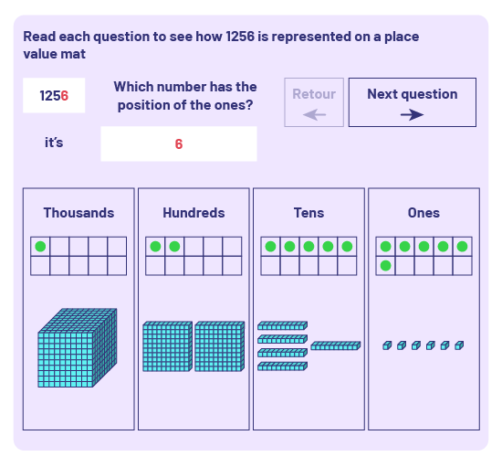 For example, it is easy for students to fill in the blanks in the following sentence by looking at the place value mat.