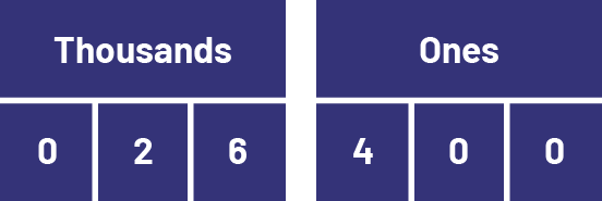 Twenty-six thousand four hundred is written symbolically as 26 400.
