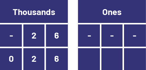 | Hundreds thousands | Ten thousands | Thousands | Hundreds | Tens | Ones |