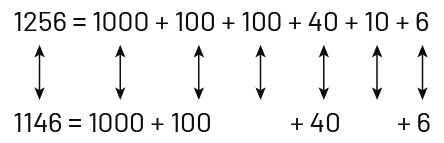 A number is represented symbolically using digits. For example, the number one thousand two hundred fifty-six written symbolically gives 1256. It can also be represented using various numerical expressions. For example, the representation \(1000 + \;200 + \;50 + 6\) allows you to recognize 1256 according to the place value of the digits that make it up. There are many other ways to decompose or represent this number: