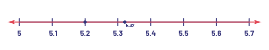 Number line from 5.0 to 5.7 with intervals of tenths: