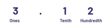 Note: Some students are under the impression that the decimal point is the centre of the decimal number. As a result, they call the first position to the right of the decimal point the "oneths" place rather than tenths place.