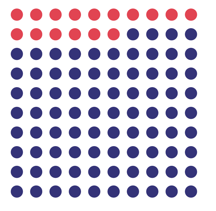 75% of the circles are red. | Even if 75% of the circles are red, that does not mean there are 100 circles in the whole. However, if there were 100 circles, there would be 75 red circles. Also, the fraction of circles that are red is equivalent to \(\frac{{75}}{{100}}\)(for example, \(\frac{3}{4}\; = \;\frac {{75}}{{100}}\) and if this amount were doubled, the corresponding fraction would be \(\frac{{150}}{{200}}\; = \;\frac{{75}}{{100}}\)). |