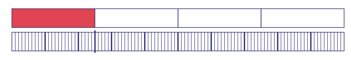 To establish the relation of equality between a fraction whose denominator is not a power of 10 (for example, \(\frac{1}{4}\)) and the corresponding decimal number, we need the concept of equivalent fractions. For example, students can use strips of equal length as shown below to see that \(\frac{1}{4}\) is between \(\frac{2}{{10}}\) and \(\frac{3}{{10}}\).