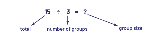In the problems presented to students, division is too often associated with only one type, which is equal sharing. Equal grouping is usually neglected. Division has a partitive or sharing meaning when the total quantity and the number of groups are known (for example, 3 students want to share 15 apples equally and we want to find the number of apples each will receive).