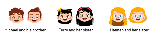 Then, do the same with two children who have exactly two siblings. The total number of children, 6, is represented by children. (Figure 2).