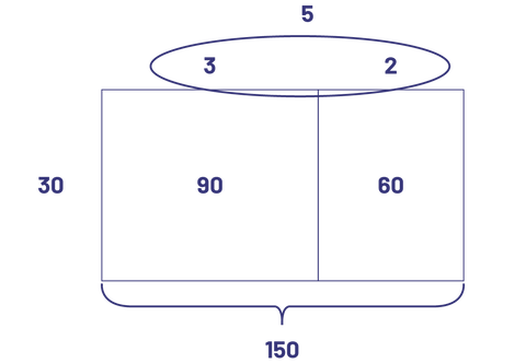 \({\rm{150}}\; \div \;5\;{\rm{ = }}\;?\;{\rm{or}}\;5\; \times \;?\; = \;150\;\)