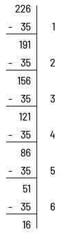 They will then be able to conclude that Mrs. Langlois will be able to give stickers for 6 days and that she will have 16 stickers left (226 ÷ 35 = 6 R16).
