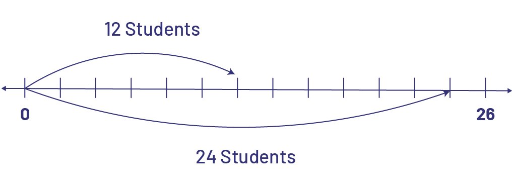 To determine \(\frac{1}{2}\) of 24, I lay out 24 counters and take half of them.