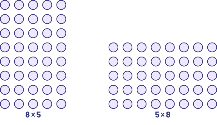 Ask students to represent 5 × 8 and 8 × 5 using arrays.