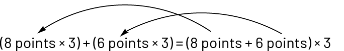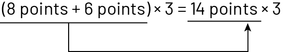 Number sentence: \(\left( {8\;{\rm{points}}\; \times \;{\rm{3}}} \right)\; + \;\left( {6\;{\rm{points}}\; \times \;{\rm{3}}} \right)\; = \;14\;{\rm{points}}\; \times \;{\rm{3}}\)