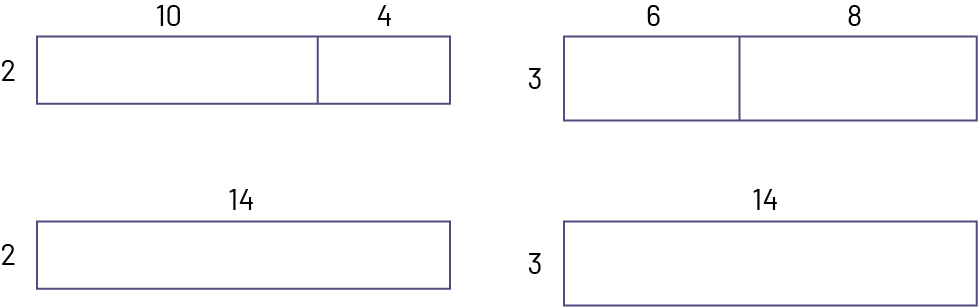 As a class, review the situations. Write different combinations and their corresponding number sentences on the board in order to highlight the usefulness of decomposing or composing a number and of the distributive property of multiplication over addition.