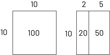 Note: Using the distributive property of multiplication over addition, the number 10 must be decomposed using a sum (for example, 1 + 9; 2 + 8; 3 + 7; 4 + 6) and not a product (for example, 2 x 5). |