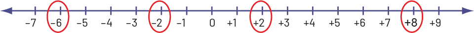 Using the number line, it is easier to compare and order whole numbers since a number with multiple digits does not necessarily mean it is larger (for example, - 584 is smaller than 8). By analyzing the line above, we can place the numbers in ascending order (- 6, - 2, 2, and 8) or descending order (8, 2, - 2, and - 6).