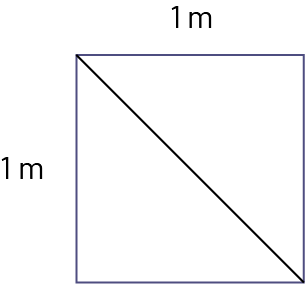 Consider a diagonal of a square with sides measuring 1 m. If we try to describe the length of this diagonal using whole numbers, we can say that it measures 1 m and "part of one metre".