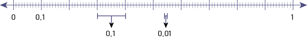 Number line to represent tenths and hundredths: