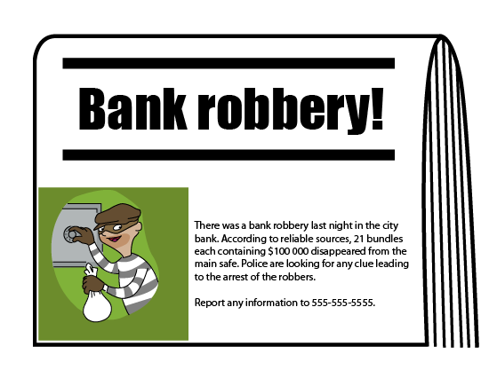 After reading, invite students to share with each other the significance of this theft by asking questions such as, "How much money was stolen? How do you write that amount in numbers?" In order to get a fair idea of the meaning of the amount stolen, teachers ask them how many bundles of $10 000 it would take to equal the amount stolen. How many bundles of $1000?