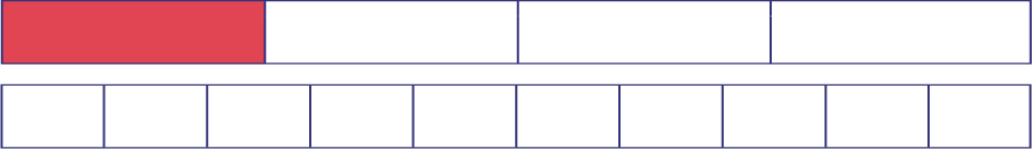 To establish the relationship between a fraction whose denominator is not a power of 10 (for example, \(\frac{1}{4}\)) and the corresponding decimal number, it is necessary to use the concept of equivalent fractions. For example, students can use strips of equal length as shown below to see that \(\frac{1}{4}\) is between\(\frac{2}{{10}}\) and \(\frac{3}{{10}}\).