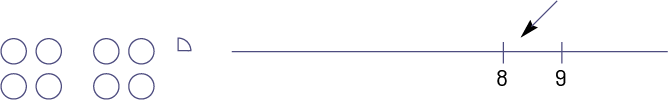 Students must also form a mental representation of decimal numbers greater than one. When reading such a decimal number, they must mentally represent the quantity it represents by interpreting the two parts that make it up: the whole number part and the decimal part. For example, they must recognize that the number 8.24 represents 8 wholes and a part of another identical whole. They can then visualize a quantity between 8 and 9.
