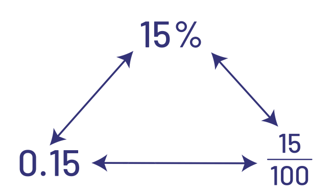 A decimal number represents a fraction whose denominator is a power of 10 (for example, \(\ 0.3 = \frac{3}{10} \) ; \(\ 0.47 = \frac{{47}}{{100}}\)). Because the concept of percent is so closely related to the concept of fraction, it is only one more step to connect percent, decimal number, and fraction. By the end of the intermediate grades, students who have developed good number sense can move from one notation to another without difficulty.