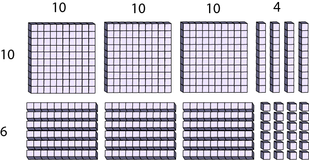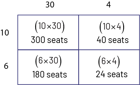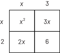 | \(\begin{array}{l}\quad 4\frac{1}{2}\; \times \;8\frac{1}{4}\\ = \;(4\; \times \;8 )\; + \;(4\; \times \;\frac{1}{4})\; + \;(\frac{1}{2}\; \times \;8)\; + \; (\frac{1}{2}\; \times \;\frac{1}{4})\\ = \;37\frac{1}{8}\end{array}\) | \(\begin{array}{l}\quad (x\; + \;3)\; \times \;(x\; + \;2)\\ = {x^2}\; + \;3x \; + \;2x\; + \;6\\ = \;{x^2}\; + \;5x\; + \;6\end{array}\) |