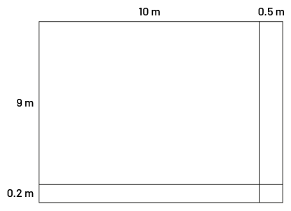 A rectangular lawn measures 10.5 m by 9.2 m. Clara subdivides her lawn in parts, as she wants to adjust the height of the mower to cut it according to the desired requirements.