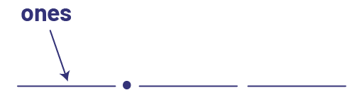 It is essential that students recognize the position of the ones, since it defines the whole, from which the tenths, hundredths and thousandths are formed on the one hand, and the tens, hundreds and thousands on the other. We can therefore say that the ones, identified by the decimal point, is at the heart of the decimal system, and there is symmetry around it.