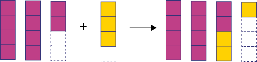 Students should also explore situations involving improper fractions. For example, the operation \(\frac{{10}}{4} + \;\frac{3}{4}\) could be represented using the following model.