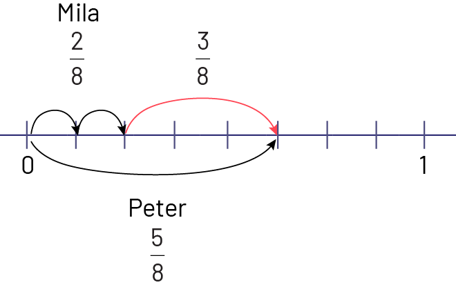 Mila took \(\frac{1}{4}\) from a pitcher of water to water her plant. Peter took \(\frac{5}{8}\) from the pitcher to water his own. What fraction represents the difference between the amounts of water used by Peter and Mila?