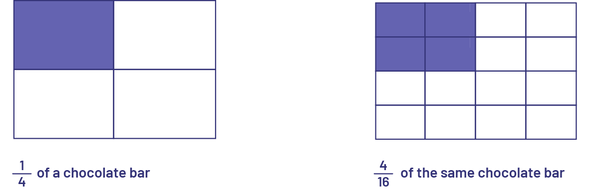 Concept: Two fractions are equivalent if they represent the same quantity.