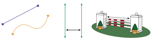 image Two points connected by a straight line. Two points connected by a curved line. Two double arrows, green. They are parallel. Between them is a black double arrow, it is perpendicular to the other double arrows. An obstacle for the horses. An arrow is placed between the two vertical bases
