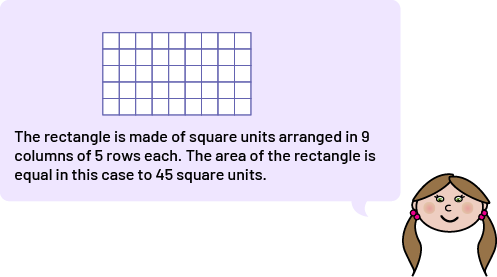 Image A grid labeled: "The rectangle is composed of square units arranged in 9 columns of 5 rows each.