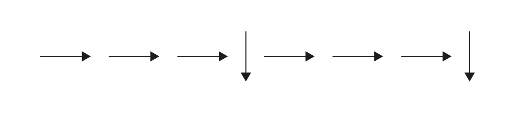 Image Eight arrows in a row. The first three arrows point to the right, one arrow points down, three arrows point to the right, the last arrow points down.