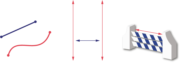 - the distance between two parallel lines or two parallel planes;