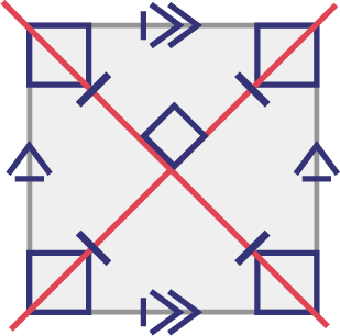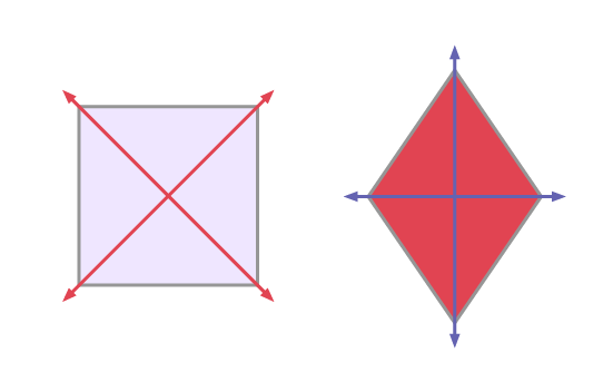 Image a square and a diamond. Two oblique lines intersect in the centre of the square. A vertical and a horizontal line intersect in the centre of the diamond.
