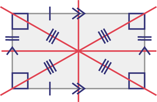 Image A rectangle with two sets of equal parallel lines. There is a dotted vertical line and a dotted horizontal line which intersect in the centre of the shape.