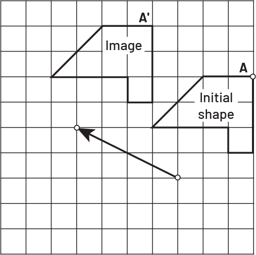 Image A grid in which there are two figures. The first, being the initial figure, is marked by a point “ a ”. The second, being the image, is marked by a point “ a ” prime. Below the figure, there is an oblique arrow towards the upper left.