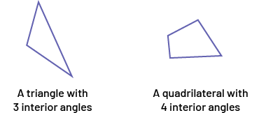 In the examples below, we see that the triangle has three interior angles and the quadrilateral has four interior angles.