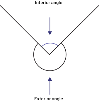 When two line segments or rays are drawn from a common point, they actually form two different angles (figure below), the interior and the exterior angle.