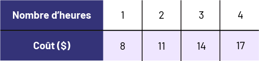 C’est en abordant des situations concrètes que les élèves consolident leur compréhension des représentations d’une situation (mots, figures d’une suite à motif croissant, représentation graphique, table de valeurs et équation) et formalisent les idées mathématiques à l’aide de symboles algébriques (variables).