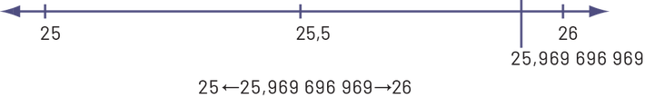 droite numérique est graduée de 25 à 26 avec intervalle de zéro virgule cinq. Sous 25 virgule cinq, le nombre 25,969